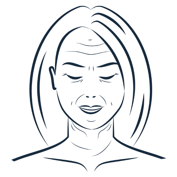 - Deepening lines and wrinkles (crow’s feet, smile lines)